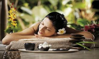 Begrüßungsdrink, Körperpeeling mit Grapefruit, Körperpackung mit Mangobutter, Rückenmassage mit Orchideenöl.